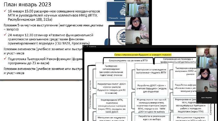 На совещании обсуждался план на предстоящий 2023 год, включающий в себя проект ФИП – инновационный образовательный проект «Структурно-функциональная модель тьюторского сопровождения будущих и молодых педагогов в системе непрерывного профессионального образования».